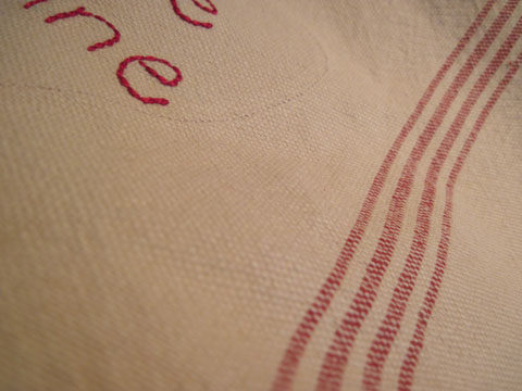 The workhorse of the group: dish towels. Because practical things should be beautiful too, right? I love this sturdy woven cotton toweling and I love how the simple letters and heart shapes look stitched on it. I think these would make great gifts, wrapped around something tasty or with a nice set of wooden spoons.